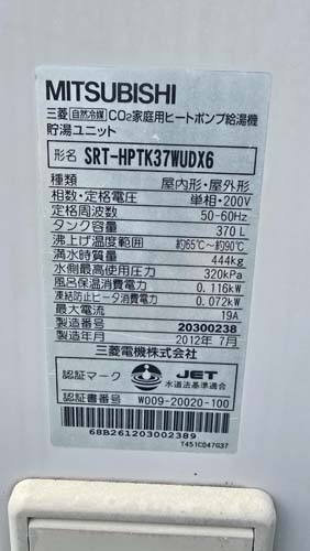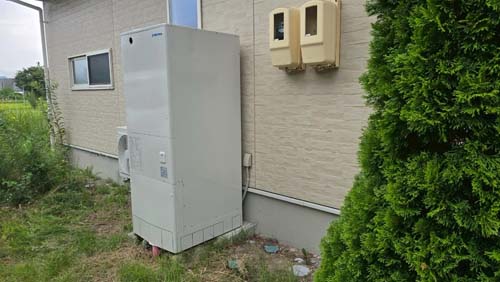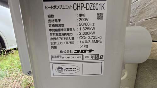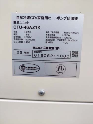 鯖江市石田上町 三菱電機自然冷媒CO2家庭用ヒートポンプ給湯機 貯湯タンクユニットSRT-HPTK37WUDX6→コロナ自然冷媒CO2家庭用ヒートポンプ給湯機 ヒートポンプユニットCHP-DZ601K、貯湯ユニットCTU-46AZ1K エコキュート交換工事 施工前 施工後